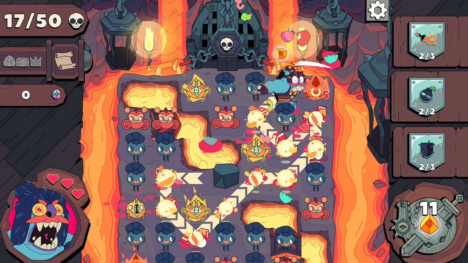在这款来自CAPY的驰名解谜战斗游戏中,击倒杂鱼来取得巨大连击数,获取珍贵的磨练石(Grindstone)吧。打造全新装备,在你攻略磨练石之山(Grindstone Mountain)的旅程中直面狡猾的敌人,障碍和头目战,并在每日排行榜上证明你的能力。